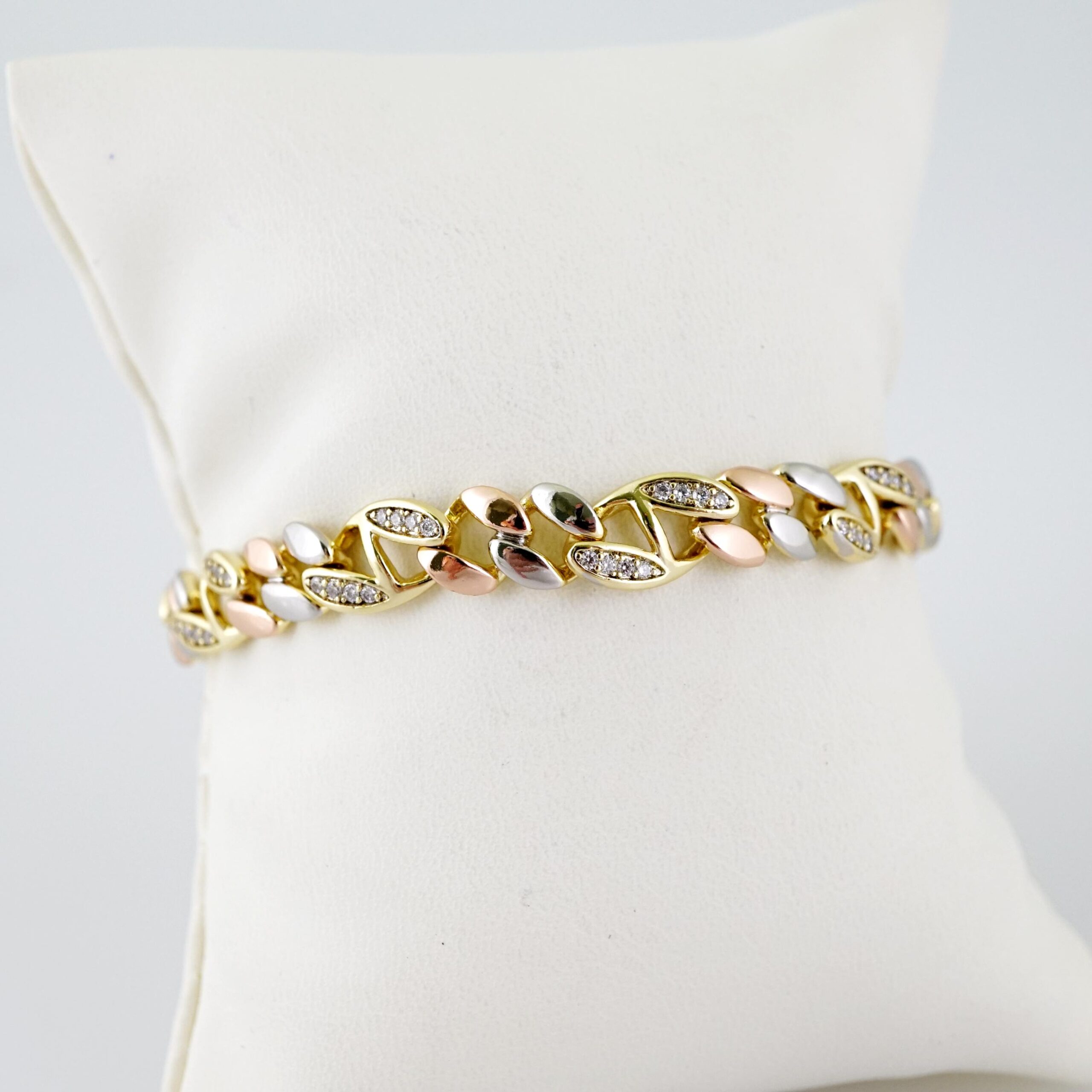 B1591 Bracelet – Pulseras – Zircon Stone – Three Tone$14.99